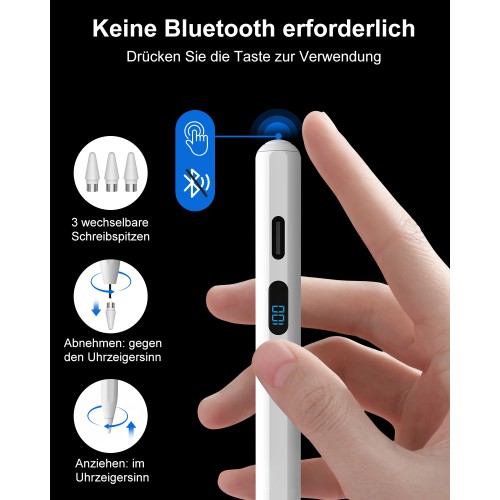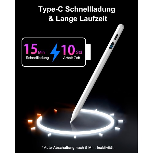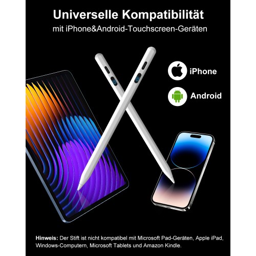 Präzises Schreiben & Zeichnen:1,2 mm POM-Spitze für glatte, präzise Linien und langlebige Performance. Schützt Ihr Display vor Kratzern.Hinweis: Keine Palm Rejection und kein Neigungssensor