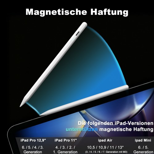 Sofort Startbereit:Ein-Knopf-Bedienung, kein Bluetooth. Kompatibel mit iPad Pro 13"/11" M4, 12.9" (3.-6.Gen), iPad Air 13"/11" M2/M3, iPad 10.Gen, iPad Mini 6.Gen. Nicht für iPhones/Android,Bitte bestätigen Sie Ihr iPad-Modell unter "Einstellungen" > "Allgemein" > "Info", bevor Sie die Bestellung aufgeben
